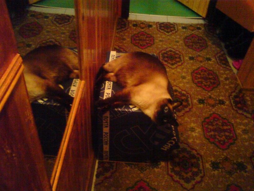 он всякие коробки, пакеты, упаковки от чипсов\рыбки просто обожает... это его слабость...