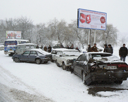 Вчера, 8 апреля, из-за сильного снегопада и гололеда в Златоусте в одной аварии столкнулись сразу около двух десятков автомашин. Автомобильная каша-мала произошла на спуске из квартала «Медик» к проспекту Гагарина. Началось все с того, что водитель иномарки не рассчитал своих сил на гололеде и вылетел на полосу встречного движения, совершив столкновение с патрульной машиной ДПС ГИБДД. Сзади в них въехал КамАЗ-мусоровоз, в который следом «прилетела» «Ока». Водители, не сумевшие в снегопад справиться с ситуацией, стали сталкиваться один за другим. ДТП разрасталось, как снежный ком.