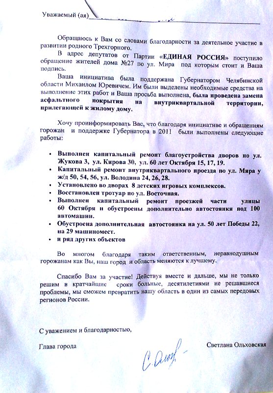 Открываю дверь - два озябших подростка , паренек и девочка.Протягивают письмо от Единой России с моей фамилией и адресом.