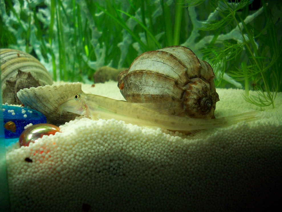 покупали в юрюзани, продавец назвал как "головоконь", а вот как правильно она называется? голова похожа на морского конька, длина около 10 см, ползает по грунту, перебирает его (песок) через жабры, часто зарывается в песок полностью или нос только торчит