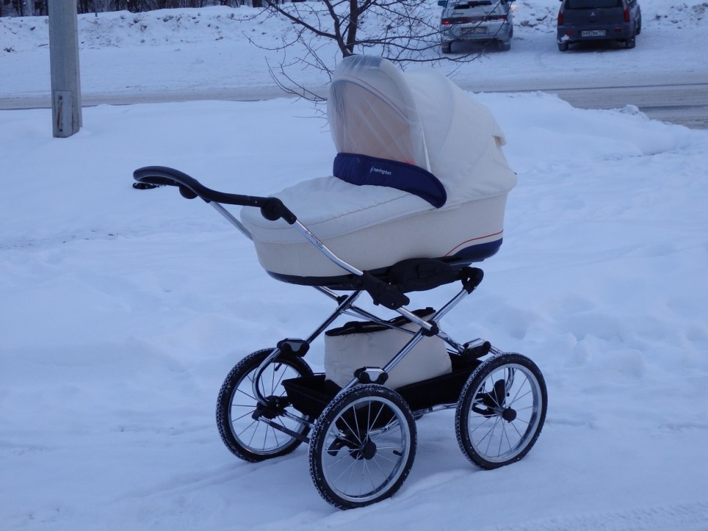 В комплекте идет шасси с колесами увеличенного диаметра (35 см). Так же можно заказать коляску Navington Caravel с колесами стандартного размера (30 см). В любом случае такая коляска не останется не замеченной!