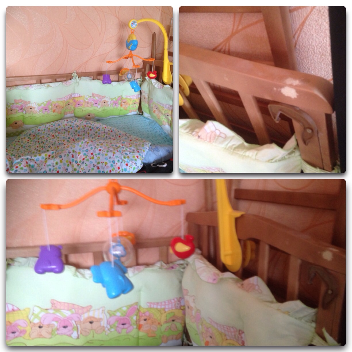 Такие кроватки, также как и кроватки-качалки и кроватки на колесах, имеют возможность зафиксировать днище в двух положениях по высоте. Когда Ваш ребенок подрастет и начнет активно двигаться, опустите дно кроватки, и она превратится в безопасный манеж. Боковую стеночку кроватки можно легко опустить при необходимости для более комфортного взаимодействия с крохой. Цена 2500. Есть небольшие царапины.