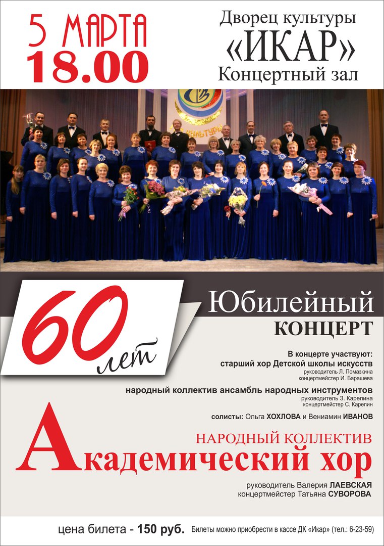 Билеты можно приобрести в кассе ДК «Икар» (тел.: 6-23-59).