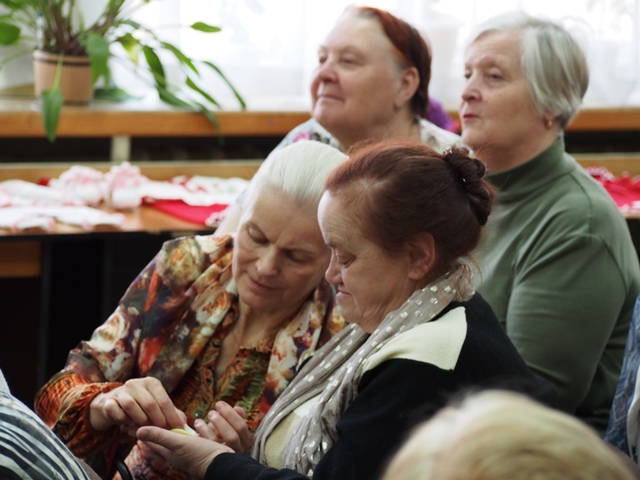 А дальше - творчество! Мастерицы поделились своими идеями, которые можно применить к празднику Пасха. Их работы были сделаны в техниках: точечная роспись, плетение из газетных трубочек, бисероплетение, вязание крючком. Прекрасные пасхальные яйца, сшитые из ткани, были украшены тесьмой. И положили их в плетеную корзинку. Получилось очень красиво и эстетично. Все идеи рукодельницы взяли себе на вооружение.