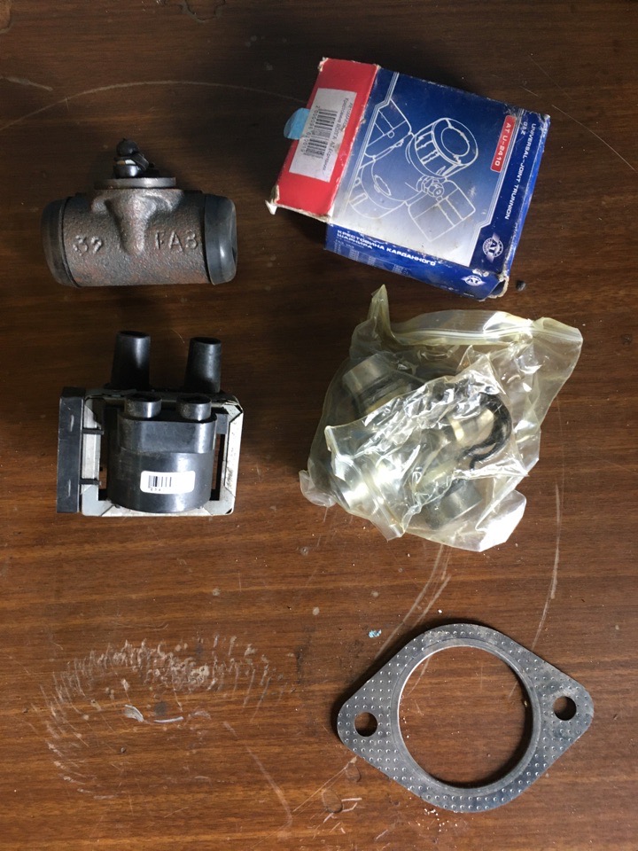 3) крестовина(новая), модуль зажигания(вроди как новый), цилиндр тормозной(новый), прокладка глушителя(новая) от ГАЗ(НЕ ЗНАЮ ОТ ВОЛГИ ИЛИ ОТ ГАЗЕЛИ) цены предлагайте
