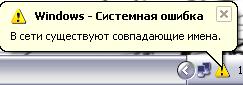 У меня дома сеть из ноута и компа. Так вот такая табличка выскакивала, когда имя компа и имя ноутбука совпадали... Я с дурости одним именем их нарёк. Так что ип и мас адрес не едиснственное, что могёт проблемму эту давать. В масштабах городской сетки не знаю как это выглядит, но у меня именно так и было.