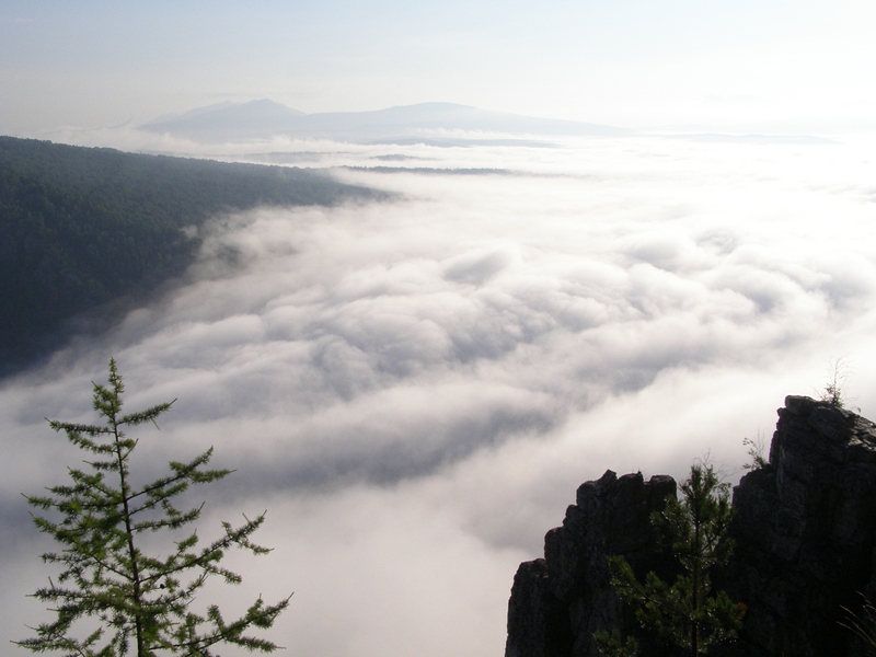 Облака стекали в долину Малого Инзера, а я сидел на высоте 715 м в одних трусах, простите)) завтракал и думал непонятно о чём.