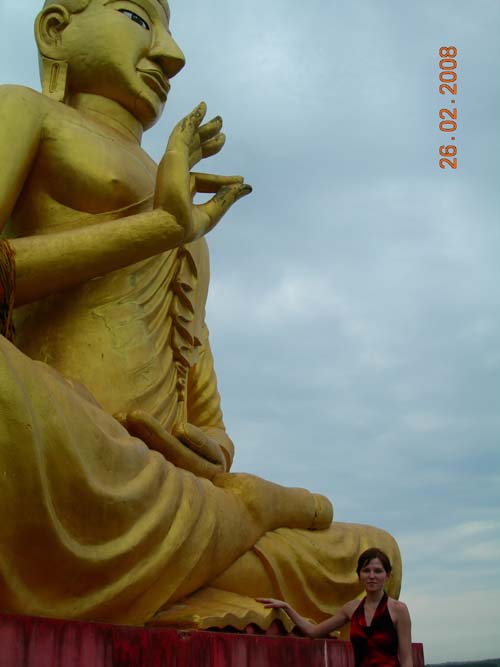 Храмы - китайский (с закрытыми дверями), и тайский - в который можно зайти всем желающим. В этом тайском храме была женщина, у которой сложная судьба какаято, родных убили, чтото такое. и она все время проводит там. Они считают ее почти святой. Она пела нам Мантру (песня о пожелании добра, типо благословения) в этом храме. Голос - не описать. Очень красиво! Потом ставила какуюто печать из розовой водички на лоб и дарила всем фенечки:)
