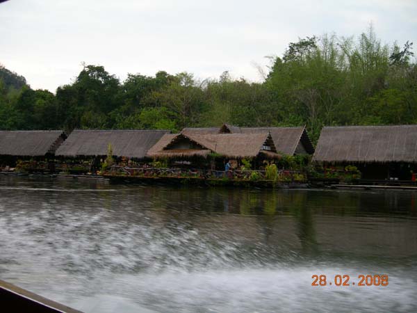 Заключение еще одной экскурсии -ужин и ночевка на реке Квай - одна из известных экскурсий в Тае - гостинница находится прямо на реке, домики на сваях. Электричесва нет, ужин при керасиновых лампах, но зато прямо на реке!! Не для тех конечно, кого укачивает:) На утро - экскурсия в деревню монов - народ, которому выделили совсем небольшую территорию вдоль границы Тайланда и Бирмы (если память не изменяет:)), потомучто раньше они воевали с ними обоими. Теперь их осталось совсем немного и живут они в этой деревушке. у них свой язык, уклад жизни. В их деревни мы и заходили утром. Перед этим они нас раскрасили - свои какието фишки:) В одном из домов видно ребеночка - местный мон