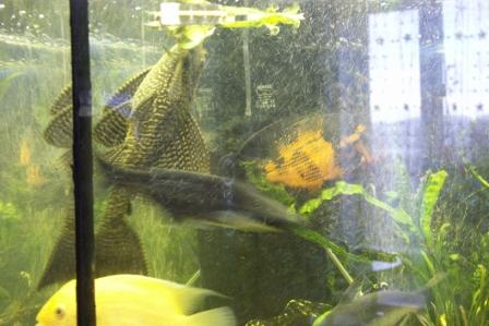 он зараза медлительный а сухой корм не ест вообще, если он будет жить на дне, то останется голодным или мне каждый раз придеца заваливать аквариум мясом что не есть хорошо... а так я ему кидаю мясо прямо в рот за фильтр, другие рыбы не отобирают