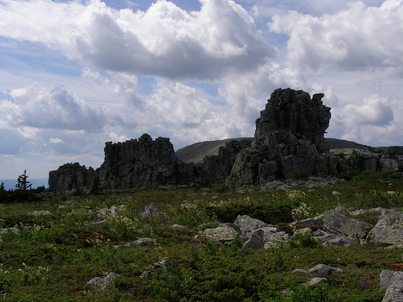 там стояла триангуляционная вышка, ее остатки еще виднеются. А то что ты назвал каменной насыпью - на самом деле называется тур. Я его в 2006 году сложил. В 2007 осенью поправлял и гвоздей насыпал.