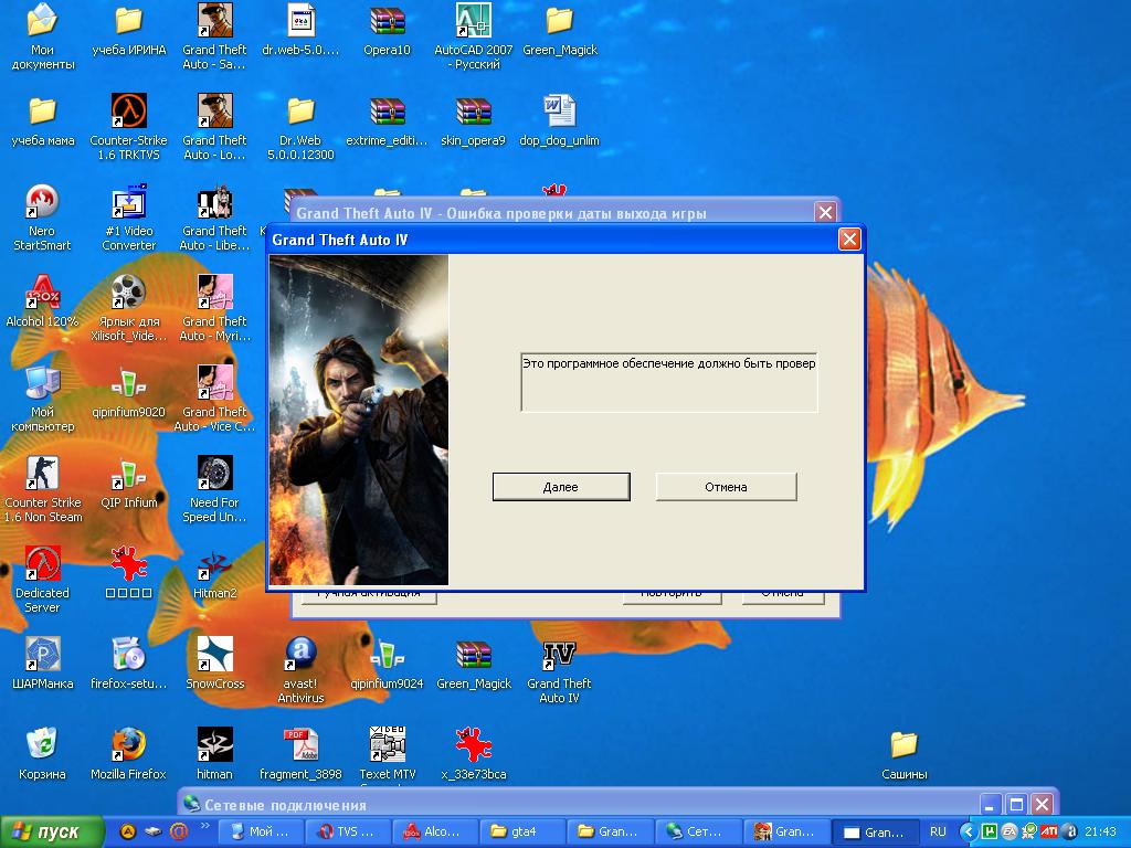Блин, скачал, целый день пытаюсь зайти в нее, все перепробовал как быно написано ранее, отключаю интернет, при запуске появляется вот что (см. рис.) и при нажатии на кнопку далее, она (табличка) появляется еще раз и т.д.