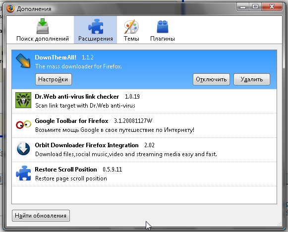 4. DownThemAll! обычный «грузчик» файлов. Отлично заменяет стандартный. Русифицирован.