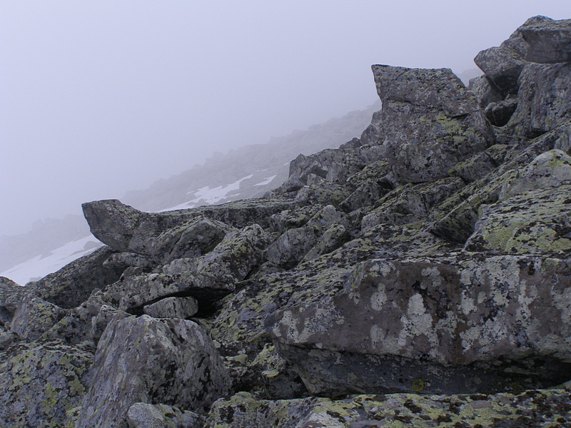 Примерно с середины склона облачность исчезла, но сама вершина всё ещё была в облаках.