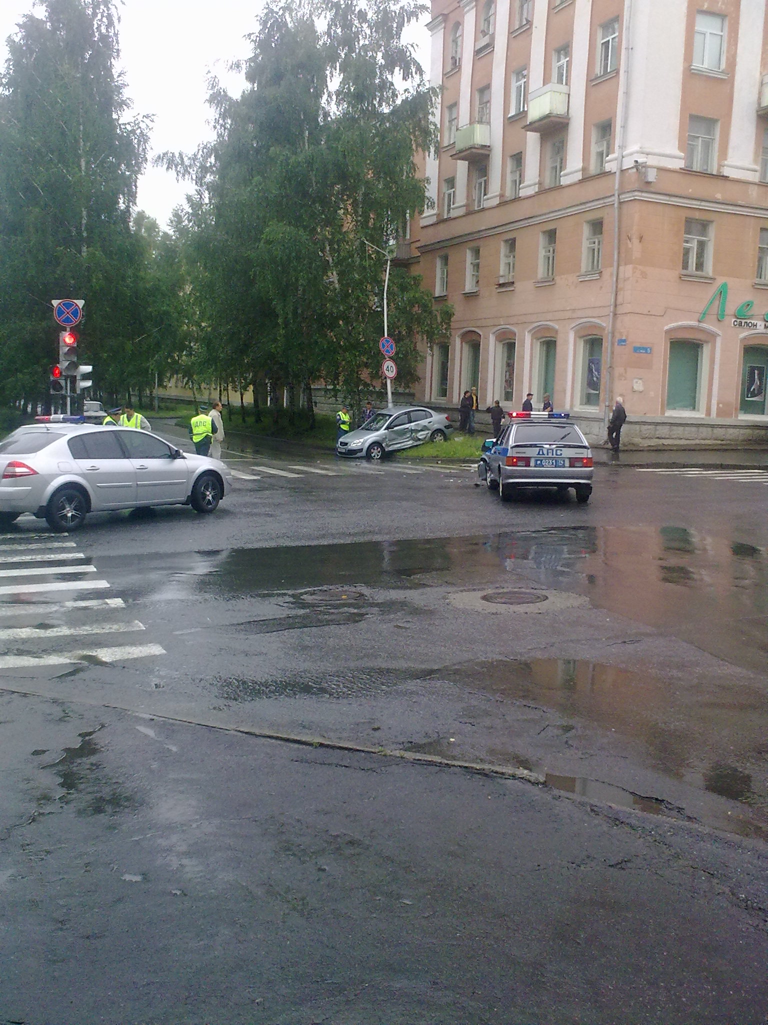 Минуту назад из окна видел на перекрёстке у ТВС Ваз 2105 или 2107 врезалась в Таёту белую (такси, когда таксист начал пропускать пешеходов...