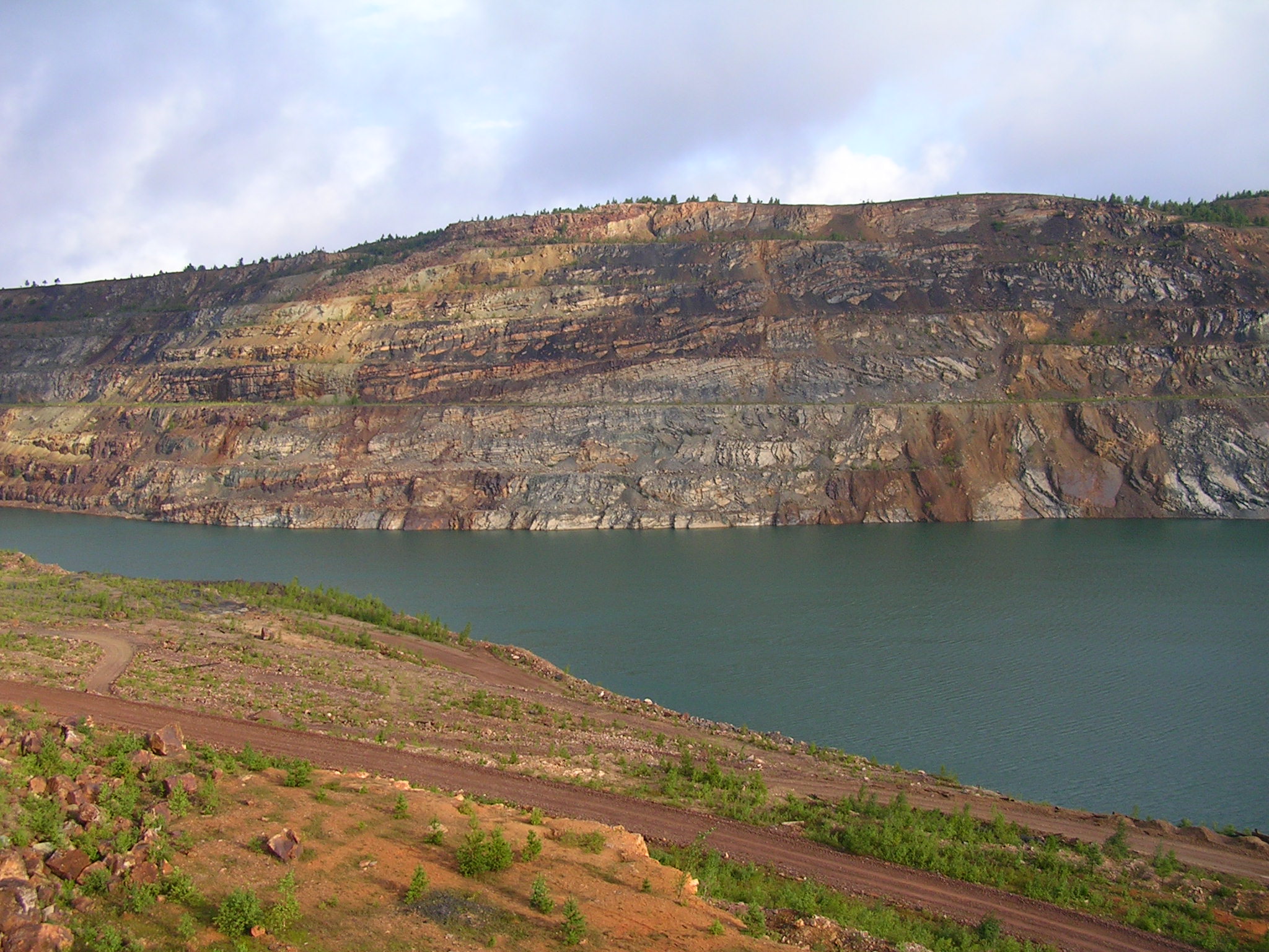 Есть карьеры и за пос.Рудничный (на Иркускане), есть и далее по трассе, если за недостроенным мостом вправо свернуть (но там по лесу и по старосаткинскому тракту по-моему ехать далеко). Насчет Иркускана - если забраться на самый верх, видно много затопленных карьеров: и тот, который на фотографиях, и с другой стороны. Затоплены в разное время и глубина от 30 до 150 метров (один горизонт - 10 метров). Так что если купаться - можно рыбкой с берега прыгать, потому что особо мелких мест нет: все либо горизонтально, либо вертикально. Рыба есть.
