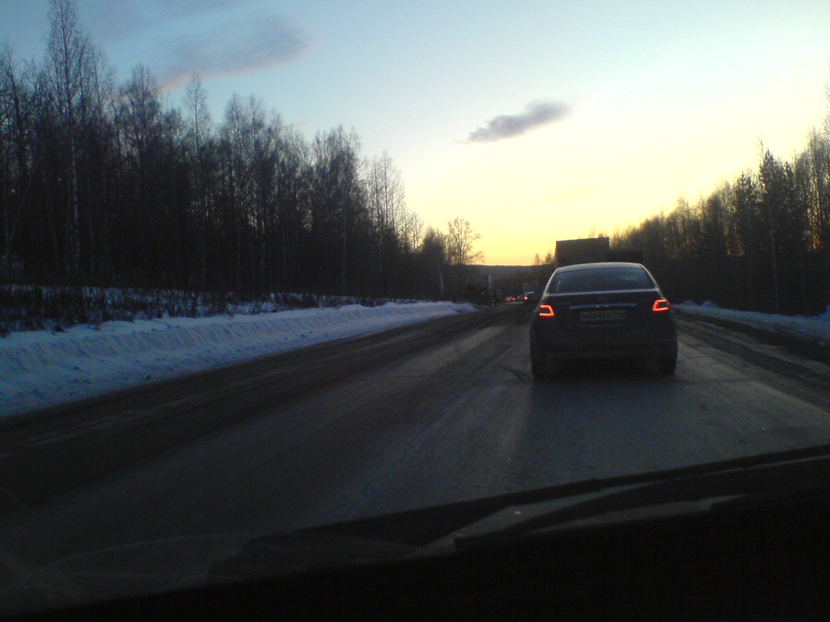первое фото(чуток коряво мобильник держал ) Это не доезжая поворота на Ашу, справа(по направлению Уфа-Трёха) 09 (она на фото), слево Камаз 8 тонник в кустах стоял
