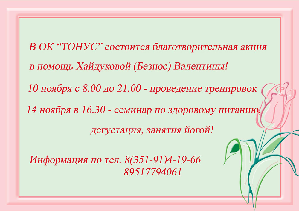 Посещаю Тонус регулярно и с большим удовольствием. Спасибо за хорошее самочувствие, прекрасное настроение и заряд позитива!