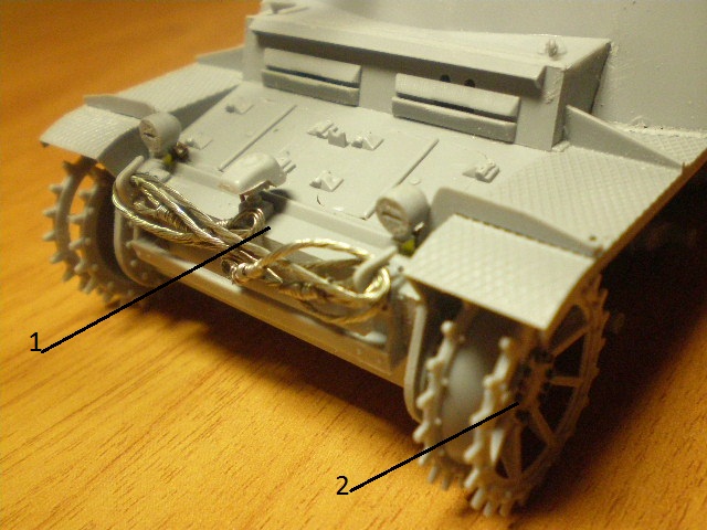 Совершенно случайно нашел тему. Может модераторы че-нибудь придумают? Большая хорошая работа над Stug III F, но есть несколько предложений (обсуждаемо). 1. Отражатель воздуха системы охлаждения в таком помятом виде просто не встал бы в места своего крепления, следовательно валялся либо в придорожных кустах, либо в виде "мусора" на броне. 2. Сетка воздухозаборника должна выглядеть иначе. 3. Вехняя ветвь гусеницы должна иметь больший натяг (т.к. ведущий каток передний )и некоторую слабину между ведущим и первым опорным катком. В подтверждение фото.