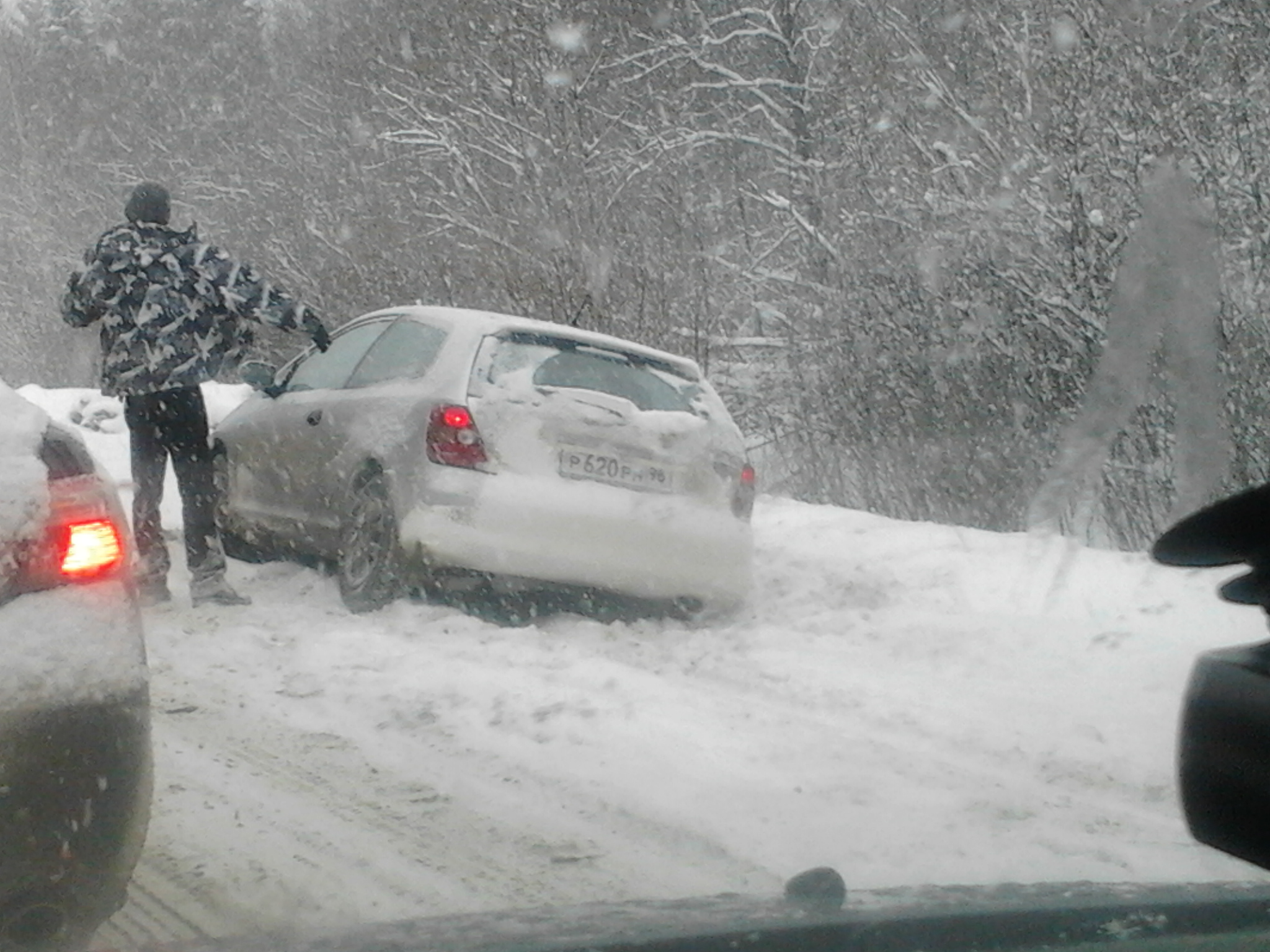 Вы прикалываетесь? Он на ходу решил пассать? Обычно зимой, тем более на заснеженную обочину, пред тем как встать, люди обычно сбрасывают скорость и аккуратно съезжают на нее, конечно есть исключения экстрималы и критины(хотя в зачастую это одно и тоже).