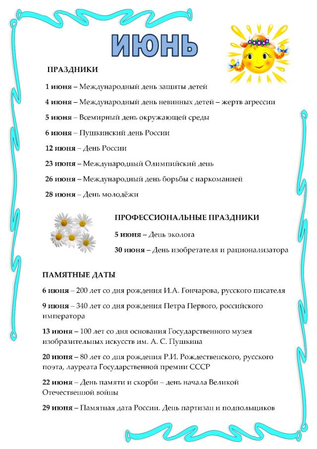Календарь знаменательных дат