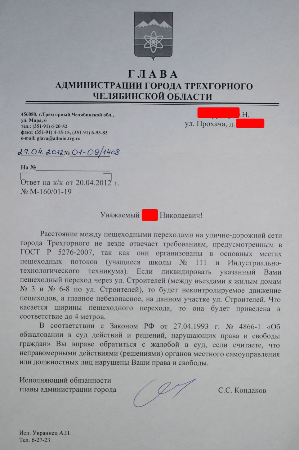 Выкладываю свою жалобу в прокуратуру и администрацию и ответы оттуда...