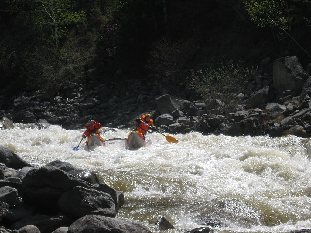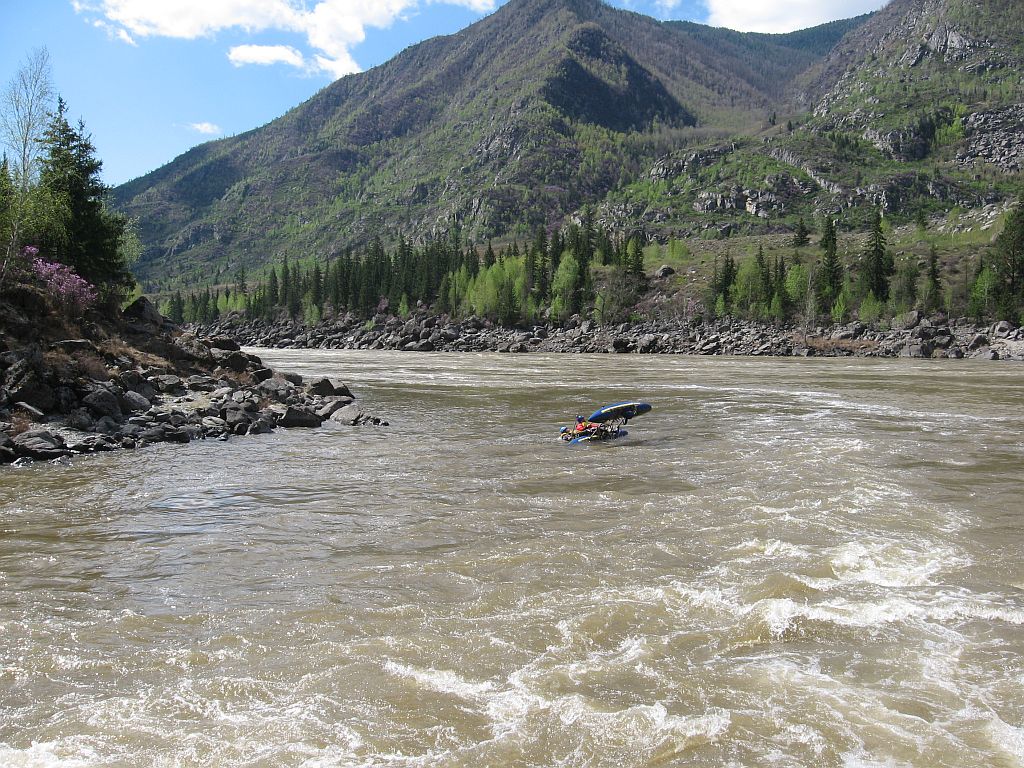 В майские праздники наш с Владом экипаж в составе команды туристов из города Екатеринбурга совершил спортивный сплав 4 категории сложности с элементами 5КС по алтайским рекам Чуя и Катунь. Активная часть сплава заняла 9 дней и за этот срок было пройдено около 120 км. Было совершено прохождение 6 порогов 5КС и несколько десятка препятствий меньшей сложности (3 и 4). При описании порогов 5КС я в скобках буду указывать сложность порога в нашу воду, как мы его оценивали, относительно принятой квалификации.