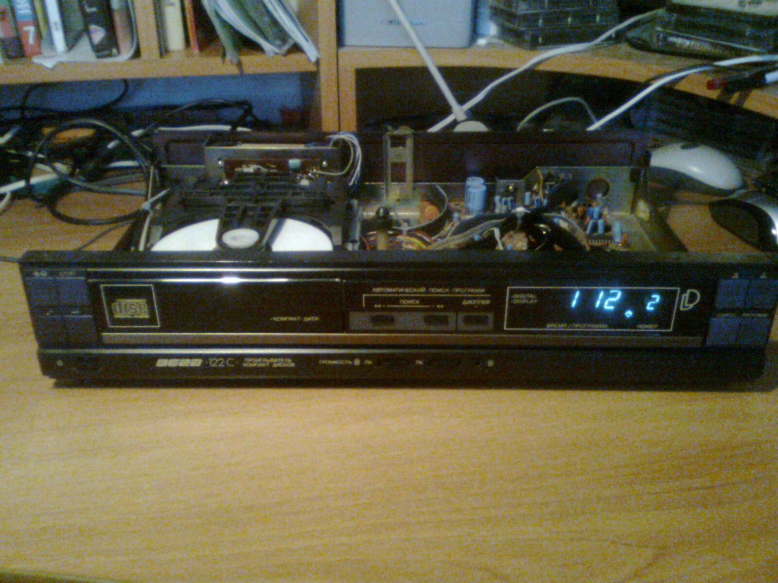 ВНИМАНИЕ,САМОДЕЛКА! Сделал CD проигрыватель Audio дисков,читает CD-R/RW. Корпус использовал от усилителя ВЕГА 50у-122. Внутри ничего лишнего нету. Блок питания на 12в,CD привод. сзади имеются 2 розетки 220в,пример можно зарядить телефон и т.д. Выход на тюльпаны не стал делать,так как в тюльпанах не нуждаюсь. Сделал на стандартный 5 конечный провод.(мне так удобнее) Дальше планирую придать ему хороший внешний вид передней панели,и сделать индикатор уровня записи на светодиодах(будет намного интереснее чем смотреть на один дисковод ))