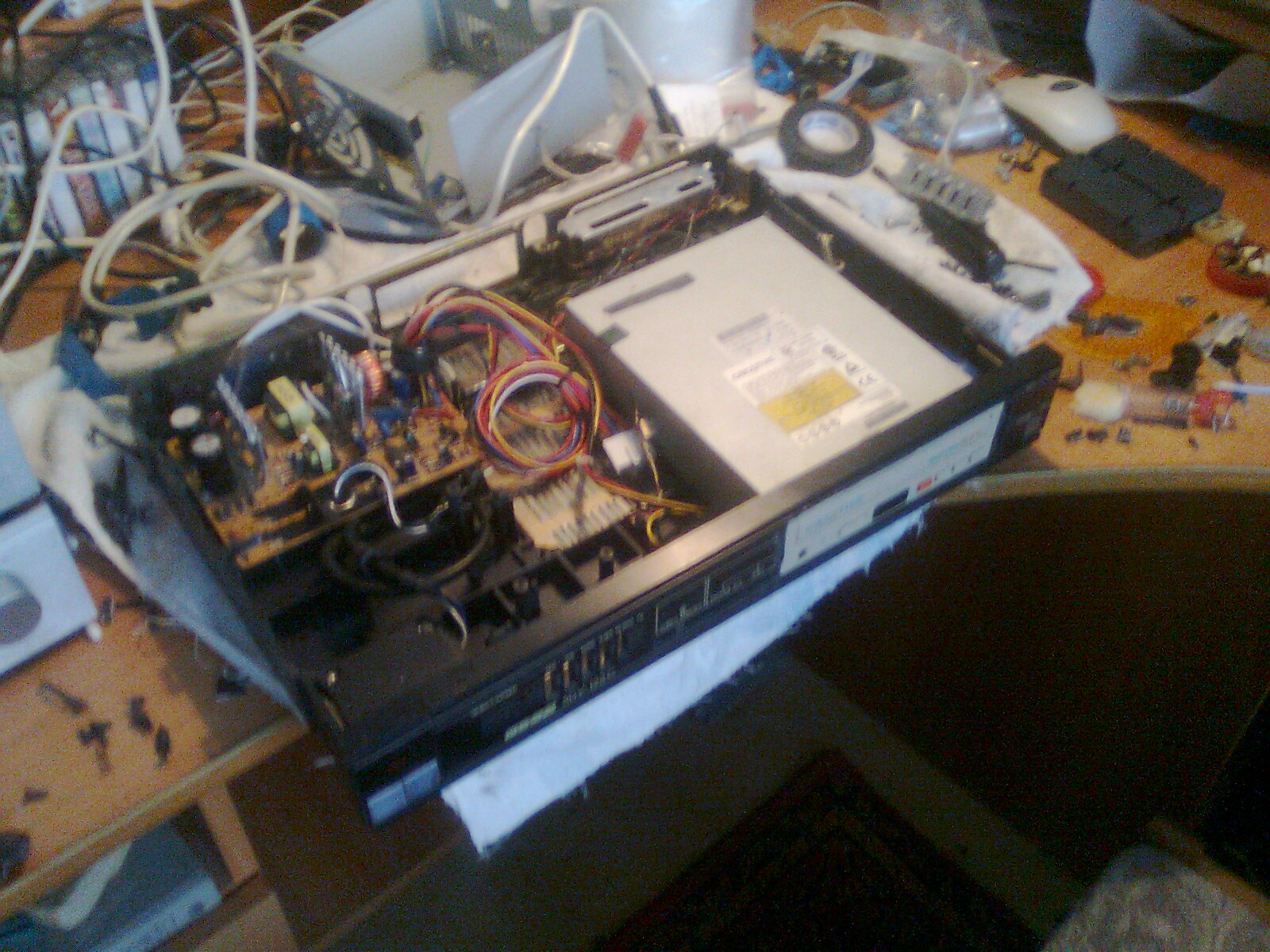 ВНИМАНИЕ,САМОДЕЛКА! Сделал CD проигрыватель Audio дисков,читает CD-R/RW. Корпус использовал от усилителя ВЕГА 50у-122. Внутри ничего лишнего нету. Блок питания на 12в,CD привод. сзади имеются 2 розетки 220в,пример можно зарядить телефон и т.д. Выход на тюльпаны не стал делать,так как в тюльпанах не нуждаюсь. Сделал на стандартный 5 конечный провод.(мне так удобнее) Дальше планирую придать ему хороший внешний вид передней панели,и сделать индикатор уровня записи на светодиодах(будет намного интереснее чем смотреть на один дисковод ))