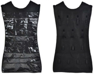 На первой стороне 30 прозрачных кармашков для хранения украшений. На второй стороне 14 крючочков для хранений бус, браслетов, ожерелий. Размер 84*47 см. Цвет: розовый и черный