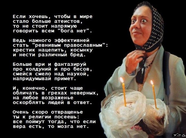 professor888 писал(а) Втр, 28 Январь 2014 18:38человек прямо написала, конечно человек имел в виду свободу принадлежащих к церкви людей...например, мне так пофиг что там церковь говорит... но, что конкретно из слов человека вы можете опровергнуть? А сейчас много верующих что то соблюдают из церковных канонов? По моему сейчас свободой никто не обделен, каждый поступает по своему разумению. Будь это средние века я бы с вами согласился, но в нынешнее время для многих якобы верующих религия просто очередная модная вещь и не более того. Отсюда и отдельные представители религии подобные звездным прихожанам. В глубинке то нет попов на майбахах и с брегетами на руках. Кстати так и не ответили какой грех на нашем батюшке про который он вам не ответил. Было бы интересно услышать.