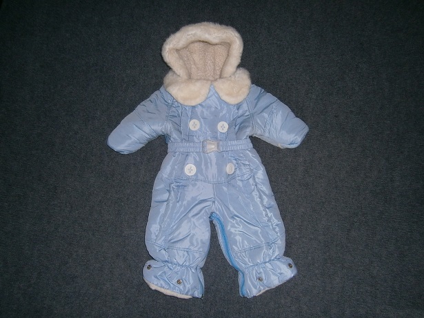 скачала фото с инета. На деле: комбезик нежно-голубого цвета+ пинетки. Овчина проходит по всему изделию, не отстегивается. В пинетках тоже самое. Делается конвертом.Просим 1300