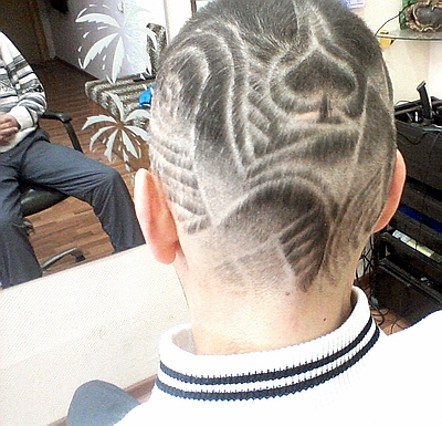 Я бесплатно прошу желающих в качестве моделей сделать себе что то подобное. А вот они и будут ходящей рекламой в городе. Здесь - лишь призыв сделать себе подобный татуаж на волосах. Кому какой рисунок понравится. Сейчас лето, можно без шапок ходить. Может кто захочет себе экстравагантный рисунок сделать, всякое бывает...