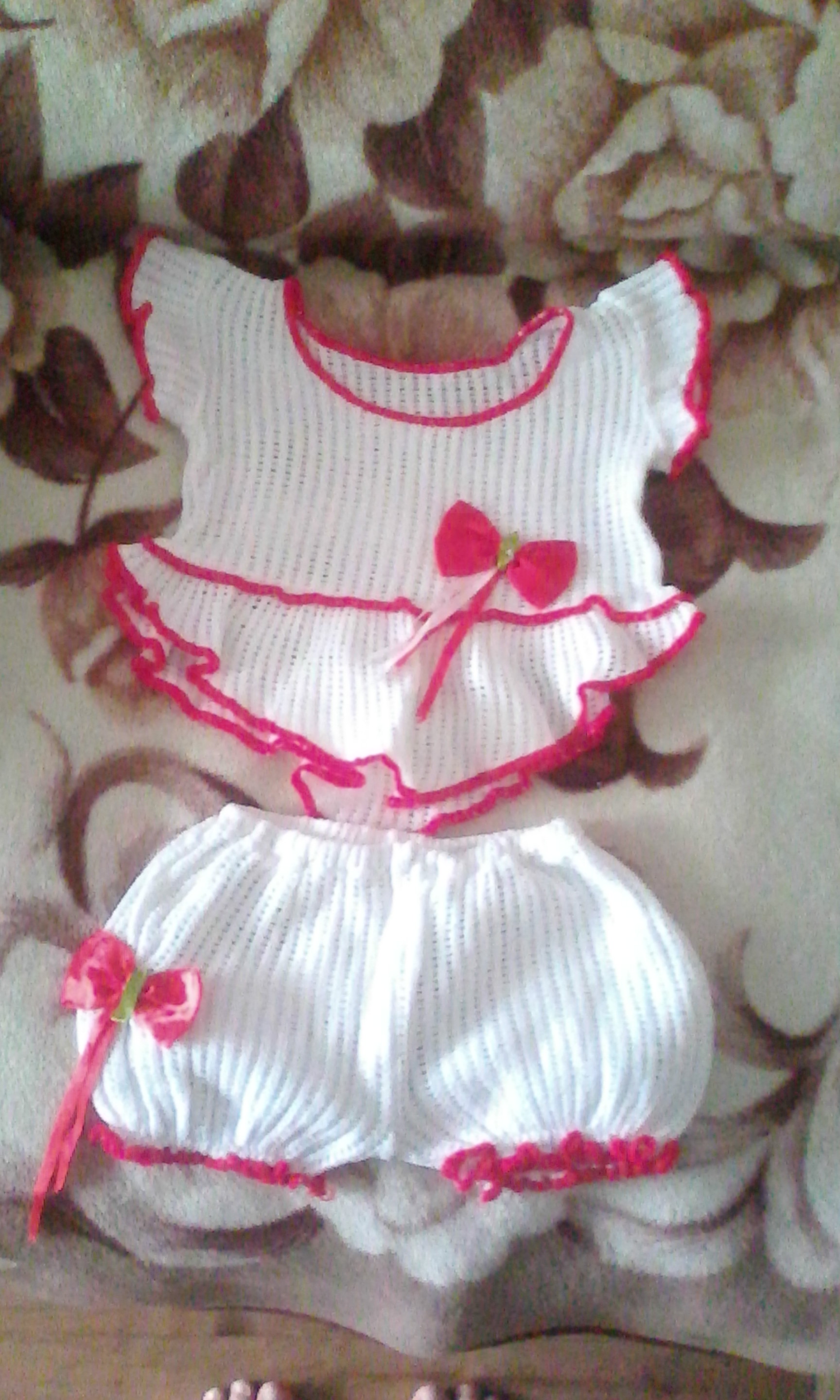 Вязаный костюмчик в жаркую погоду кофта с шортами от 6-8 мес.150р.