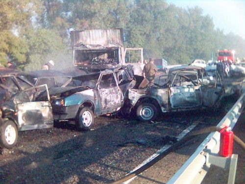 Как известно, поток в это время очень оживленный, дачники спешат домой, и, в результате, автомобиль буквально разнесло на части.