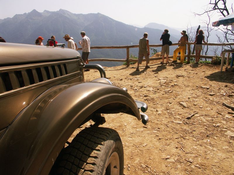 Забраться на гору, чтобы сверху посмотреть на Красную поляну можно двумя способами, это на подъемнике, который стоил еще дороже чем на Домбае и ничего интересного из себя, как мы поняли не представлял, либо на "Джипах", по нашему говоря на Уазиках