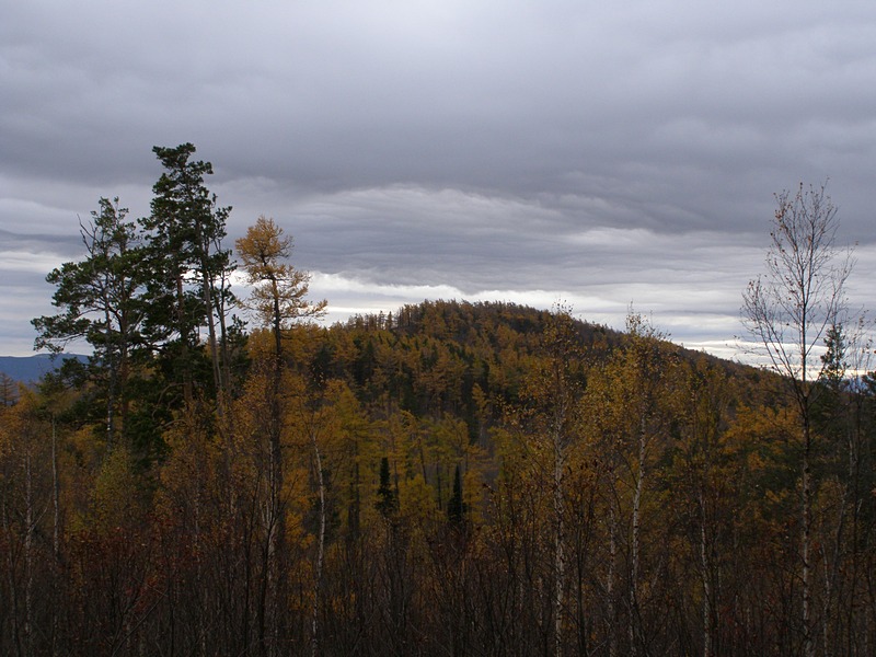 Наверху нас встретил ветер, который принёс с юго-западной стороны дождевую тучку. Но она догнала нас лишь когда мы уже спустились назад. Вокруг всё было преимущественно в жёлтых тонах, благодаря многочисленным лиственницам. Нашли место моей позапрошлогодней стоянки. Было очень красиво и не хотелось уходить. В общем, отлично провели время и к 19:00 были уже дома. В общем всё. Ходите, люди, в лес!