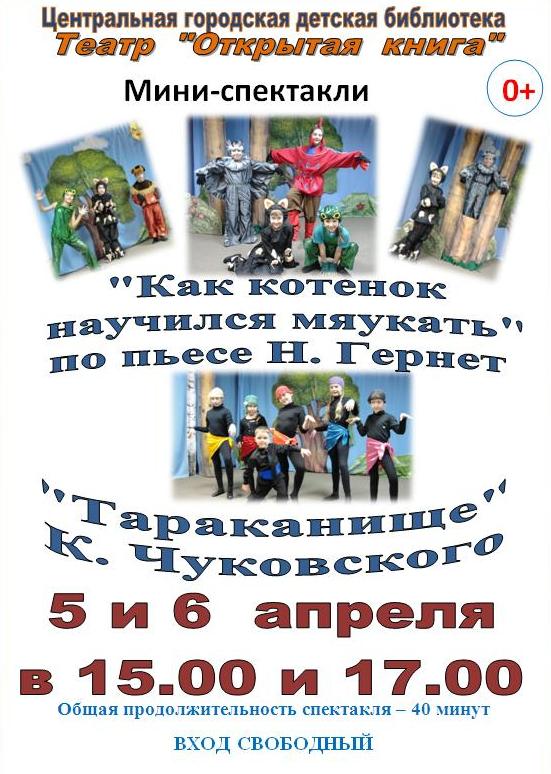 Итак, в субботу и воскресенье, 5 и 6 апреля, все вместе, всей семьей - В ДЕТСКУЮ БИБЛИОТЕКУ на спектакль!